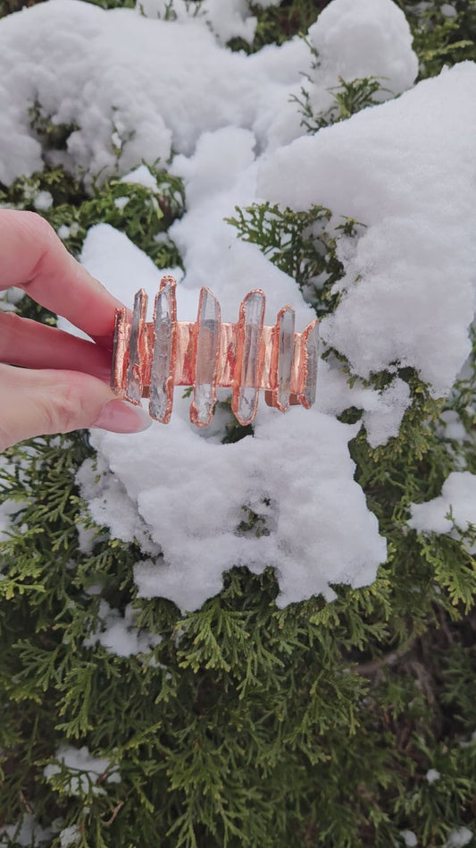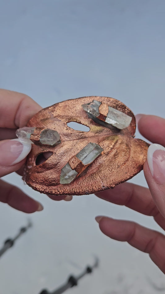 Handmade Copper Cuff Bracelet: The Fable of Monstera, and Clear Quartz: A Talisman for Growth, Clarity, and Renewal