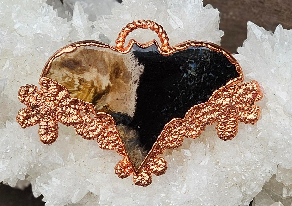 Discover the Beauty of Palm Root Crystal and Copper Lace in a Bat Pendant