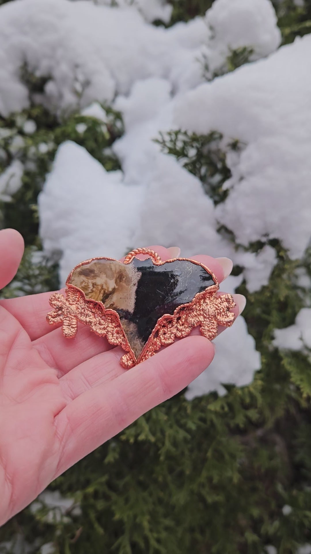Copper lace adds an element of beauty and interconnectedness to the pendant: