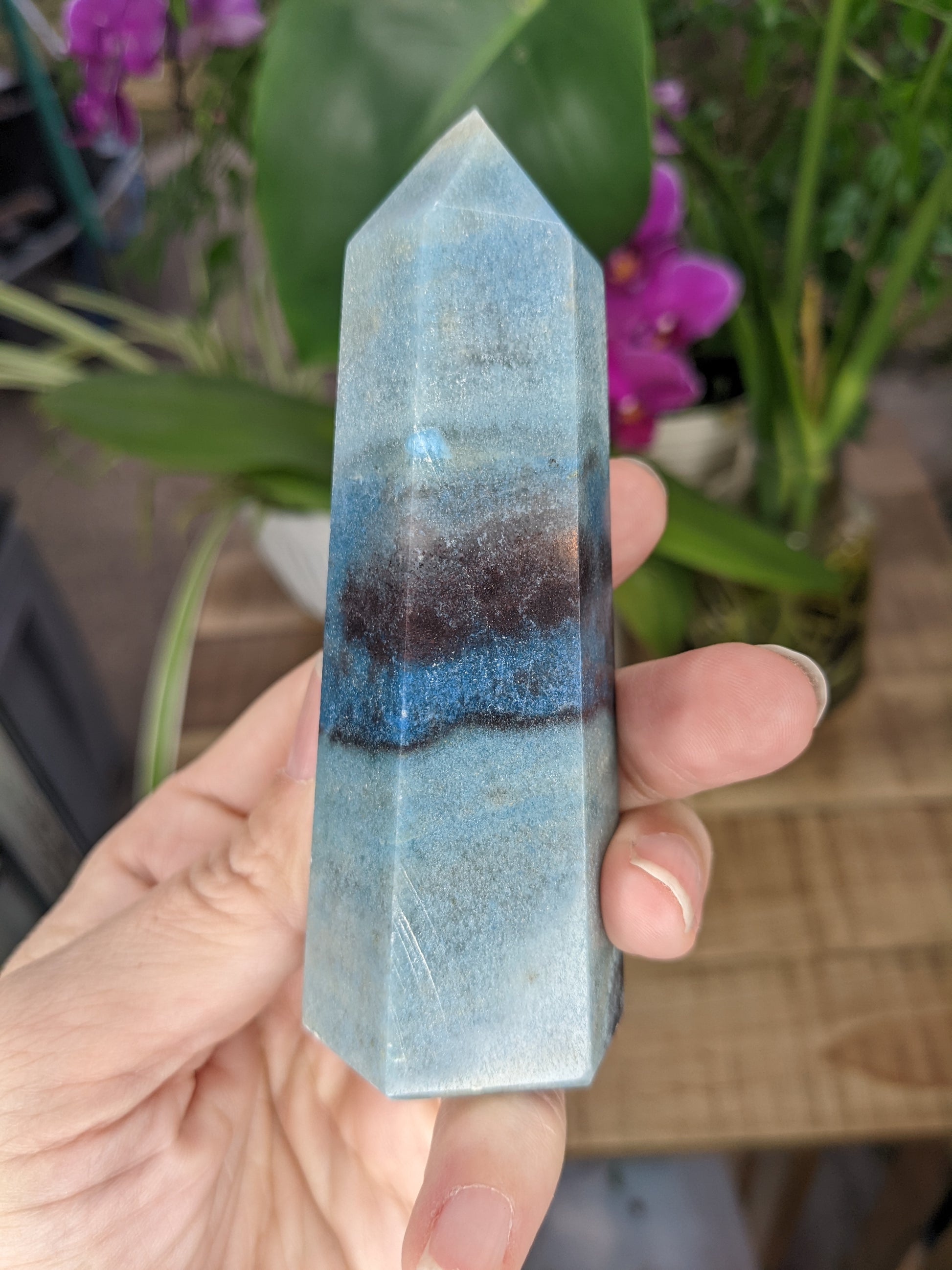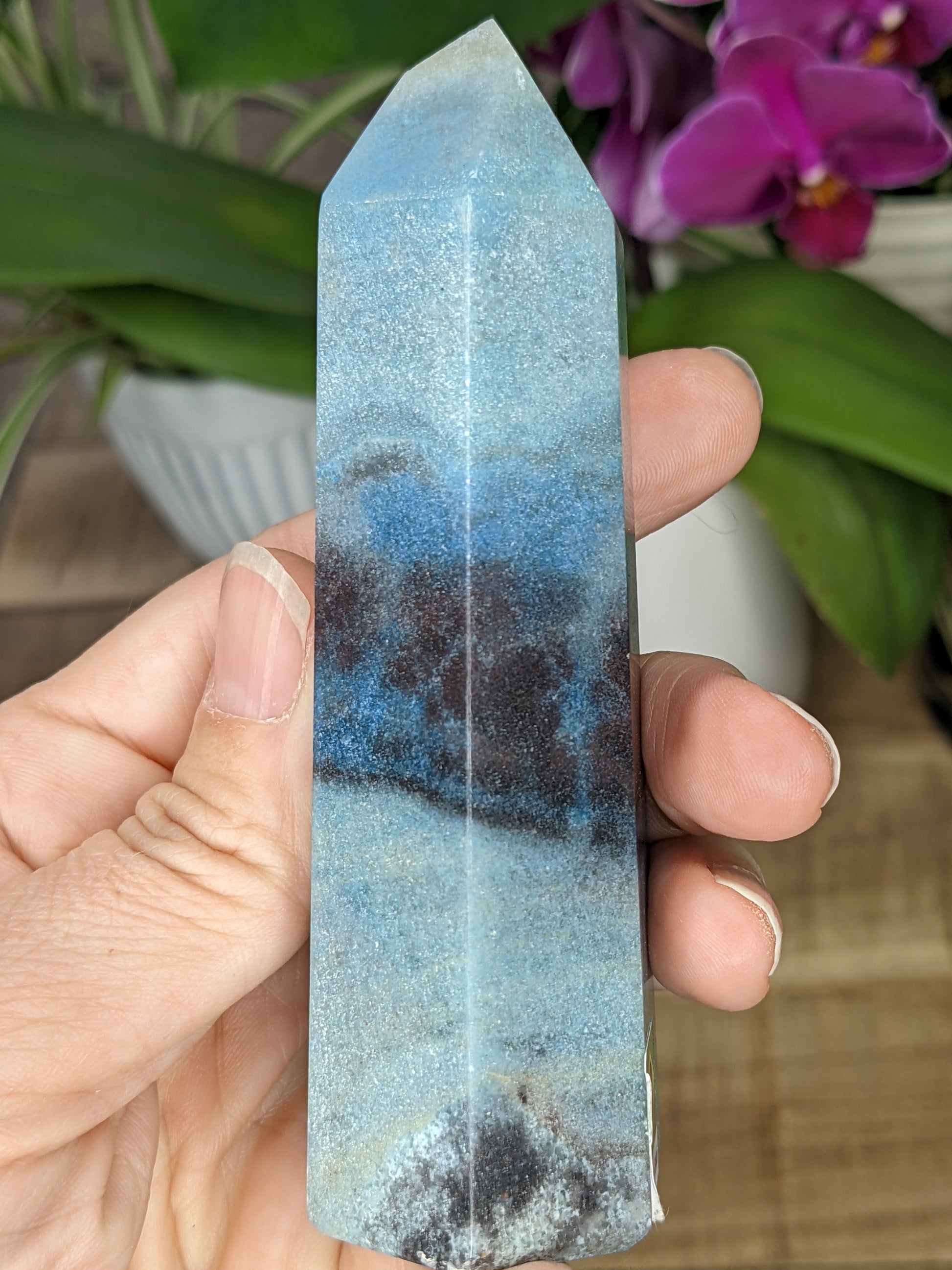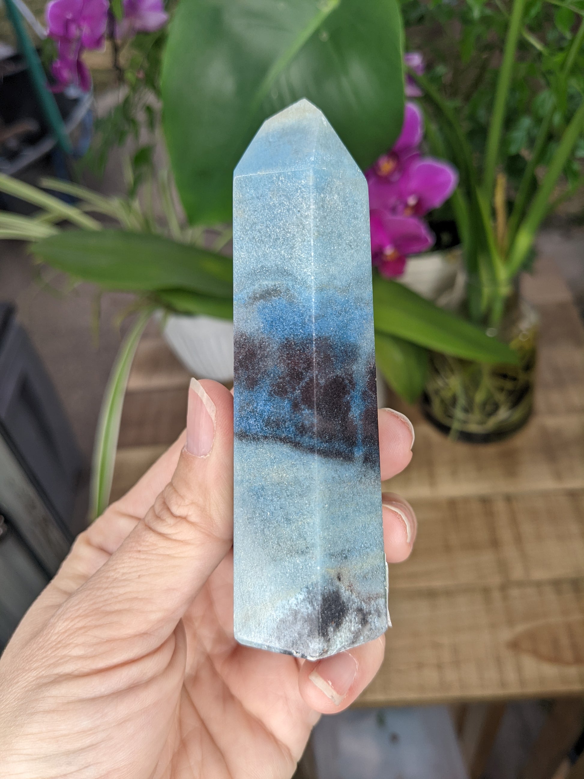 TROLLEITE is a beautiful, pale blue crystal that combines the energies of Quartz, Lazulite, Scorzalite and Lepidolite into a potent, upper-level chakra energizer! TROLLEITE works on the Throat, Third Eye and Crown chakras, allowing us to access our higher consciousness and our connection to the wider universe. Along with encouraging us to speak our truth and extend compassion to those around us, TROLLEITE also amplifies our sense of creativity and helps us to manifest our thoughts and ideas. By cleansing our consciousness of the weigh of doubt and previous negative experiences, TROLLEITE allows us to draw a new path thru life, with fresh ideas and optimism about achieving our goals.